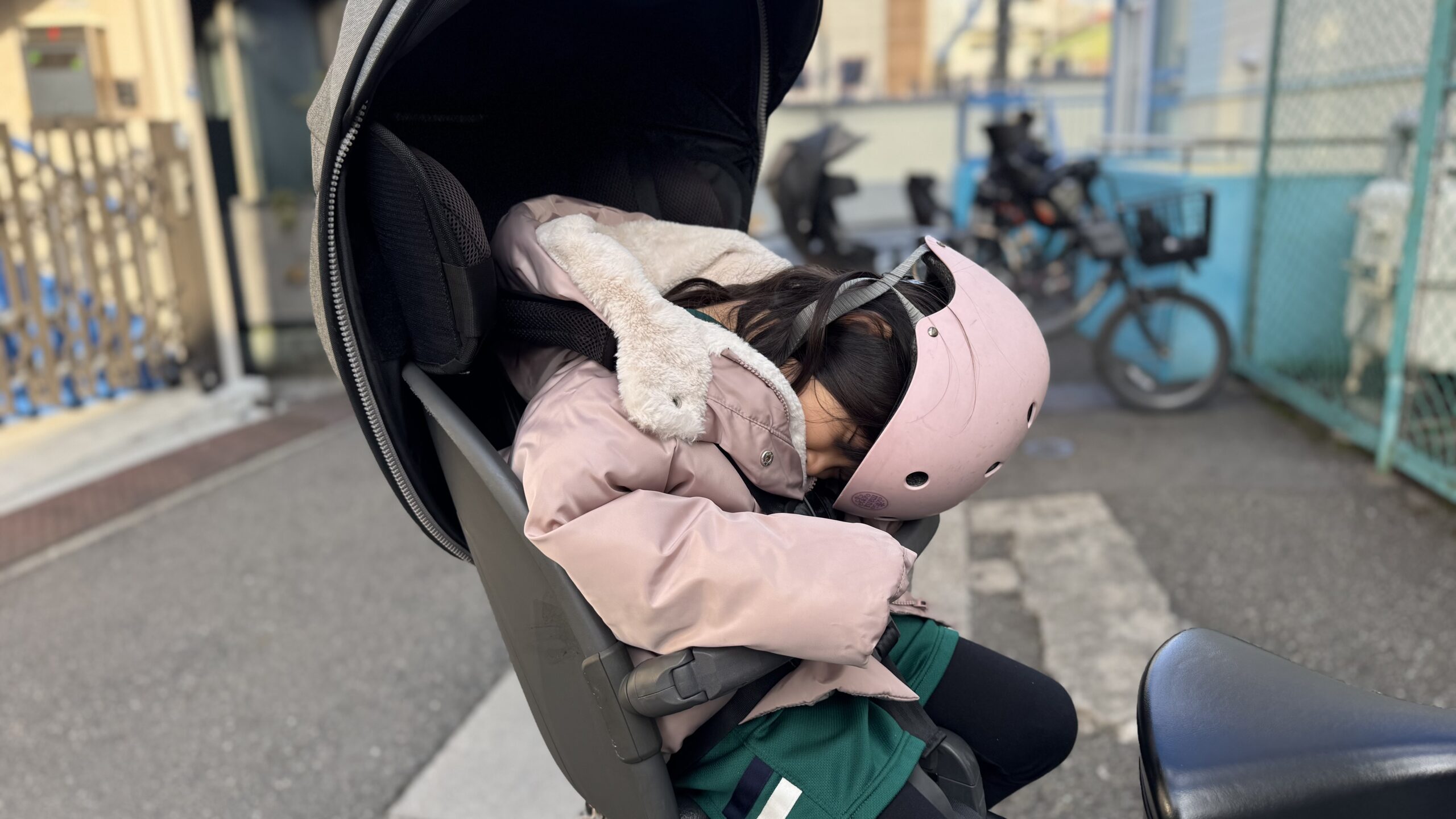 走りながら、なんだか静かだな、と思ったら、自転車の後ろで寝てしまっていた。